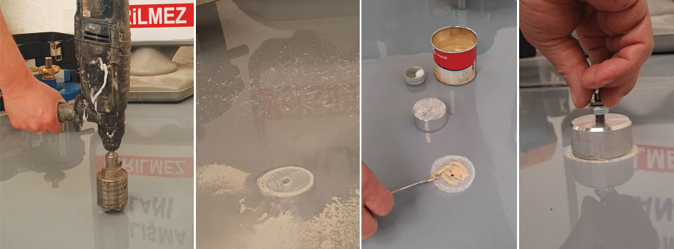 TS EN 1504-2 de belirlenen TS EN 1542‘e göre Dijital Pull Off Test Cihazı ile (Yapışma Dayanımının Çekip Koparma Metoduyla Tayini) epoksi kaplamanın beton yüzeye yapışma testinin yapılarak ürün performansının beyan edilmesidir. TS EN 1542 ye göre epoksi kaplamanın 7 günlük kürlenmesinden sonra uygulanacak deney sonucuna göre;
